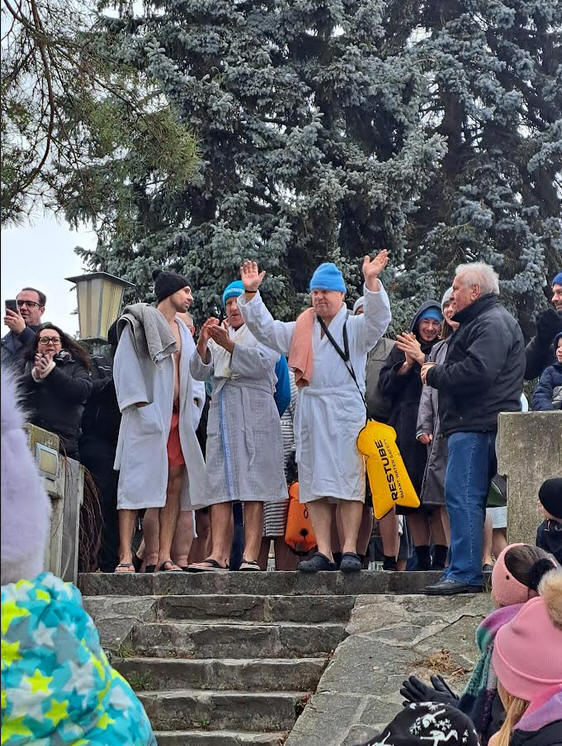 50 Mutige waren bei 1,4 Grad Wassertemperatur dabei. Josef Köberl und der Obmann Ricki Werner waren die Organisatoren dieses Events, an dem 250 Schaulustige teilnahmen.