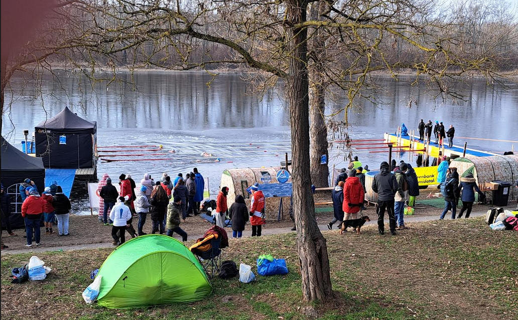 Die österreichischen Eisschwimmermeisterschaften fanden mit großer Beteiligung in Altenwörth statt, Wassertemperatur bei 1,2 °C